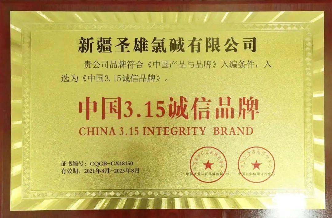 ? ? 近日,新疆圣雄氯堿有限公司(以下簡稱“圣雄能源氯堿廠”)產(chǎn)品品牌經(jīng)中國質量認證監(jiān)督管理中心、中國企業(yè)信用評估中心認定,榮獲“中國3·15誠信品牌”榮譽稱號。該權威認證充分肯定了圣雄能源氯堿廠講誠信、重質量的經(jīng)營理念,彰顯了企業(yè)良好的信譽和形象。