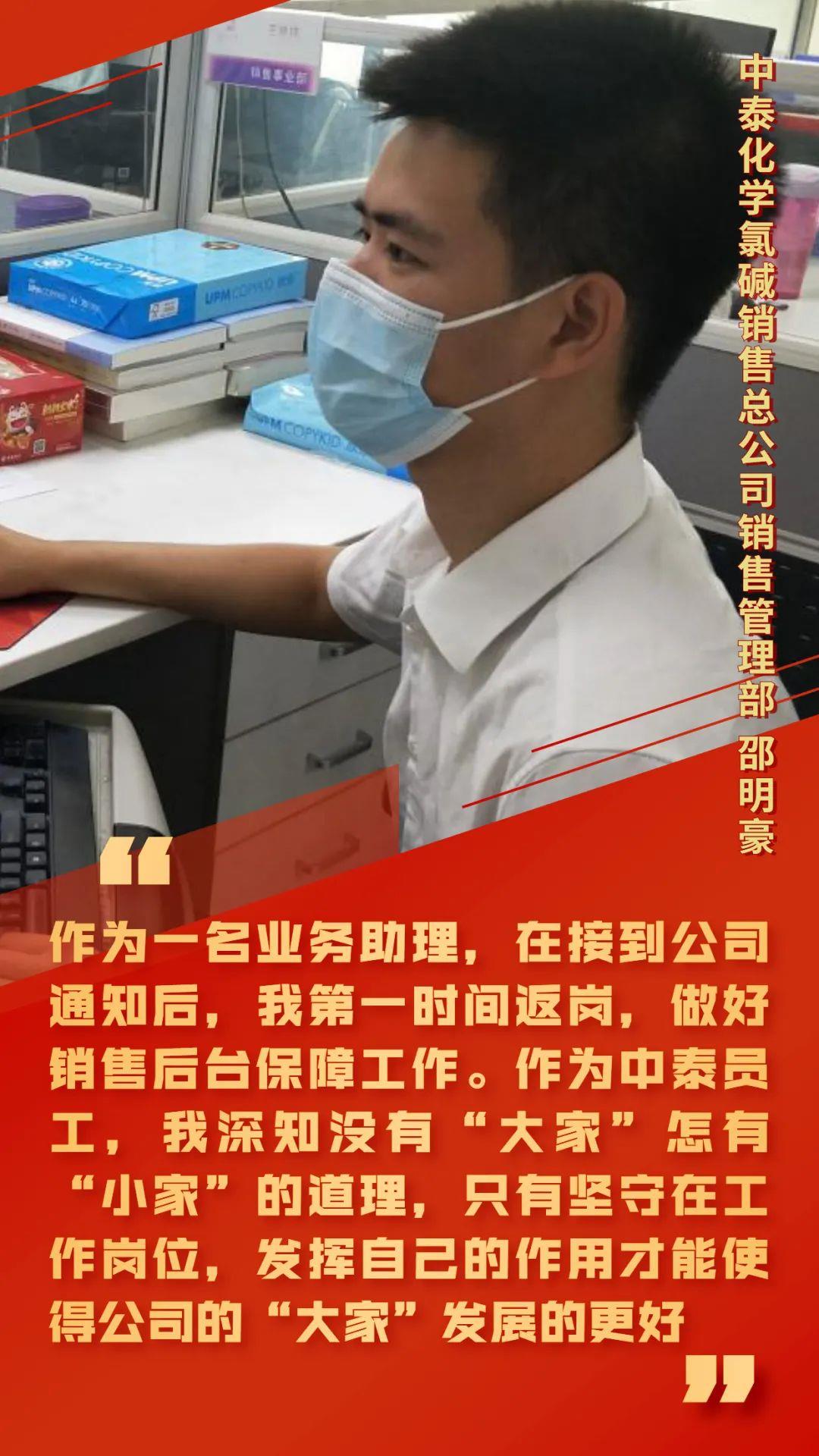 ??? 中泰化學(xué)氯堿銷售總公司按照公司要求,統(tǒng)籌部署,在不影響疫情防控工作的同時(shí),安排人員陸續(xù)返崗。10日凌晨,兩個(gè)小時(shí)的時(shí)間,從電話鈴聲中醒來,到收拾行李,再到順利到達(dá)崗位,每一位員工都用中泰速度,中泰擔(dān)當(dāng),彰顯著銷售人的責(zé)任心和使命感。靜態(tài)管理期間,公司銷售人員有的駐守單位保障后臺運(yùn)行,有的始終堅(jiān)守在市場拓展和客戶服務(wù)保障前沿,確保了公司主要產(chǎn)品的銷售穩(wěn)定。