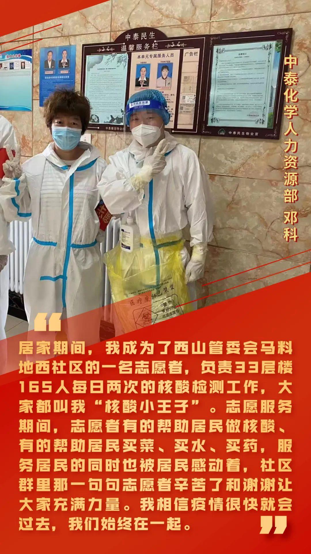 ??? 2022年8月10日早8點(diǎn),烏魯木齊市多個(gè)區(qū)縣按下“暫停鍵”,原來繁華喧囂的城市突然安靜了下來。根據(jù)公司疫情防控工作總體安排,中泰化學(xué)各單位、各部門迅速行動,積極應(yīng)對疫情影響,在做好疫情防控工作的同時(shí),全力確保生產(chǎn)、供應(yīng)、銷售及日常工作正常穩(wěn)定運(yùn)行,并在社區(qū)志愿工作中展現(xiàn)中泰形象。
