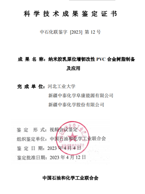 阜康能源“納米膠乳原位增韌改性PVC合金樹(shù)脂制備及應(yīng)用”項(xiàng)目通過(guò)中國(guó)石油和化學(xué)工業(yè)聯(lián)合會(huì)科技成果鑒定
