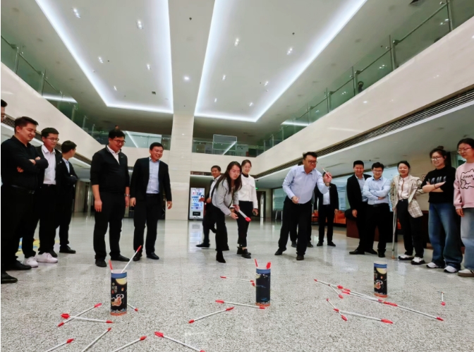 隨后,聯(lián)歡活動結(jié)合中秋、國慶節(jié)日主題,融入企業(yè)元素,設置了猜謎、投壺、智力大比拼、摸石頭過河等游戲環(huán)節(jié)。猜謎環(huán)節(jié)設置了黨建小知識和傳統(tǒng)字謎,采用積分賽制的形式提高員工學思辨能力。投壺射禮作為古代一項兼具禮儀教化與休閑娛樂的社會活動,活動將古代傳統(tǒng)娛樂項目,帶入日常生活中,讓大家感受到傳統(tǒng)節(jié)日的美好與樂趣。活動現(xiàn)場氣氛活躍,參加活動的員工各展其能、角逐競技,加油聲、吶喊聲此起彼伏。