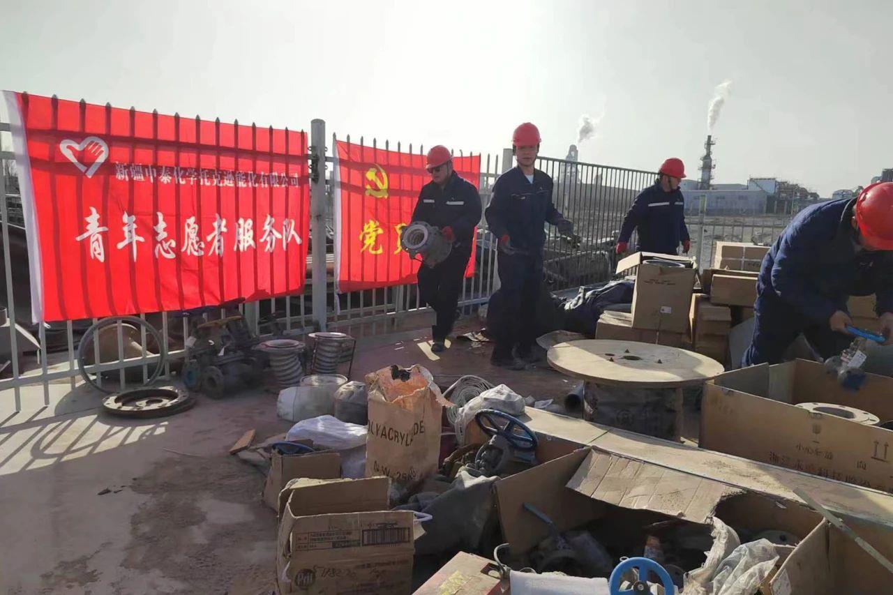 托克遜能化各分廠黨員先鋒隊、團員青年志愿服務(wù)隊,對園區(qū)綠化帶進行清理、清潔大掃除(李天祥