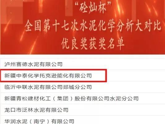 近日,國家水泥質量監(jiān)督檢驗中心權威發(fā)布全國第十七次水泥化學分析大對比獲獎名單,新疆中泰化學托克遜能化公司(以下簡稱“托克遜能化”)榮獲全國第十七次水泥化學分析大對比“優(yōu)良單位”榮譽稱號。(圖片來源:中國水泥網(wǎng))據(jù)了解,全國水泥化學分析大對比每兩年舉行一次,代表了中國水泥行業(yè)最高標準對比賽事。此次獲獎不僅展示了公司質量管理人員嚴謹?shù)墓ぷ髯黠L、扎實的技術功底和良好的職業(yè)素養(yǎng),更樹立了良好的企業(yè)形象。