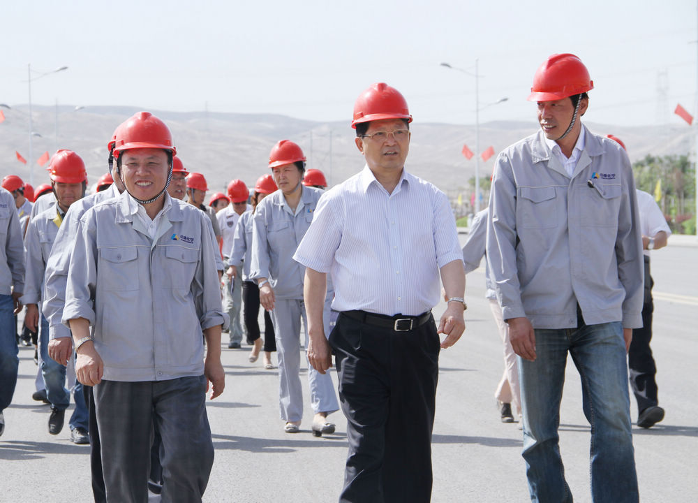 -                                         自治區(qū)國(guó)資委主任張繼勛一行到中泰化學(xué)調(diào)研8月28日上午,自治區(qū)國(guó)資委黨委副書記、主任張繼勛一行來到中泰化學(xué)甘泉堡工業(yè)園就下半年國(guó)資委直接監(jiān)管企業(yè)經(jīng)濟(jì)運(yùn)行情況進(jìn)行深入調(diào)研。張繼勛指出,中泰化學(xué)是新疆跨越