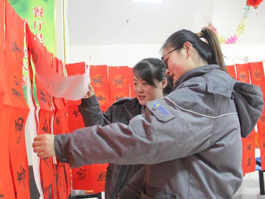喜慶的春聯(lián)、紅彤彤的“?!弊?;濃濃的墨香、興奮的笑臉……1月31日,托克遜能化開(kāi)展了迎新春送春聯(lián)活動(dòng),以特殊的方式喜迎新春佳節(jié)。員工現(xiàn)場(chǎng)欣賞對(duì)聯(lián)(胡曉君 攝)走進(jìn)活動(dòng)現(xiàn)場(chǎng),筆者看到,一幅幅散發(fā)著墨香的春聯(lián),一字排開(kāi),引來(lái)各族干部員工駐足欣賞,紅火熱烈的年味兒撲面而來(lái)?,F(xiàn)場(chǎng)喜氣洋洋(胡曉君 攝)“寫(xiě)春聯(lián),是國(guó)粹;送春聯(lián),是送溫暖,也是送吉祥?!蓖锌诉d能化電石四車(chē)間配電工蔡能君捧著一副對(duì)聯(lián)興奮地說(shuō),“過(guò)春