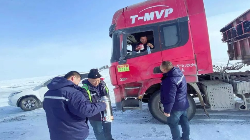 “ 師傅們,辛苦了,來(lái)喝點(diǎn)熱水,吃點(diǎn)東西,天冷路滑,一定要注意行車安全?!薄爸x謝公司對(duì)我們的關(guān)心,你們想得真周到,真是太感謝你們了!”一句句熱情的話語(yǔ),一聲聲貼心的問(wèn)候,中泰化學(xué)下屬子公司新疆藍(lán)天誠(chéng)達(dá)物流有限公司( 以下簡(jiǎn)稱“藍(lán)天誠(chéng)達(dá)”)員工的貼心服務(wù)得到了等待通行的駕駛員一致好評(píng)。連日來(lái),新疆多地遭遇強(qiáng)降雪天氣,導(dǎo)致路面結(jié)冰濕滑,嚴(yán)重影響車輛出行安全。12月11日清晨,省道103黑山至阿樂(lè)惠路段突降大雪